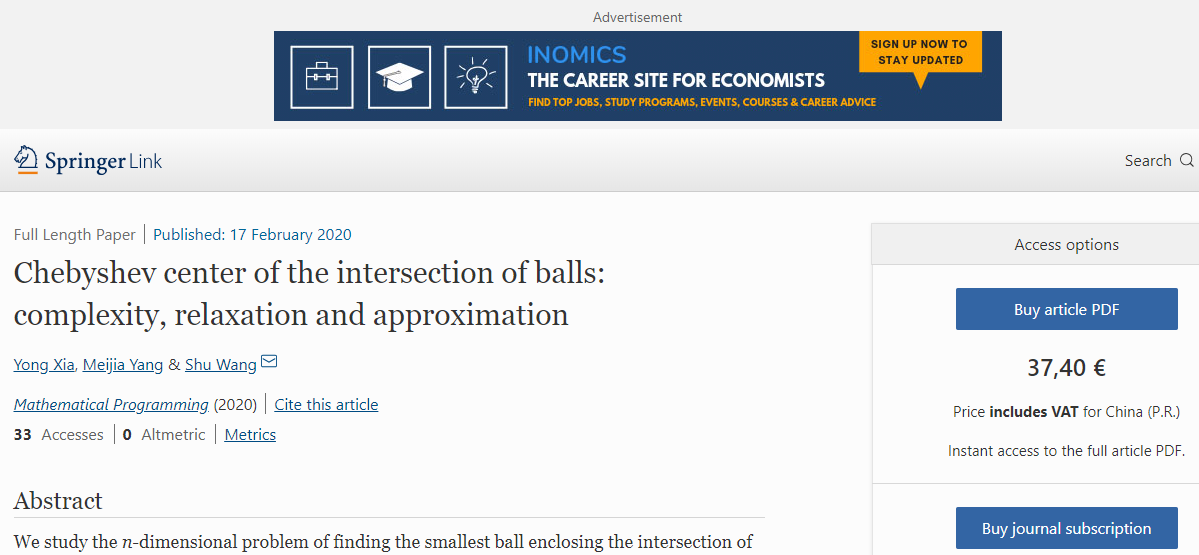 Team of Prof. Xia Yong Publishes Paper in Mathematical ProgrammingMarch 19, 2020 -