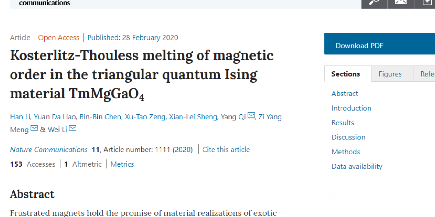 Prof. Yang Shubin's Group Publishes Article in Nature, Reporting Latest Progress on 2D MaterialsMarch 7, 2020 -