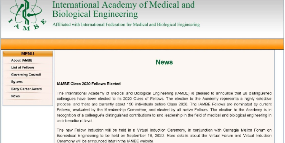 Prof. Fan Yubo Elected IAMBE FellowMay 29, 2020 -