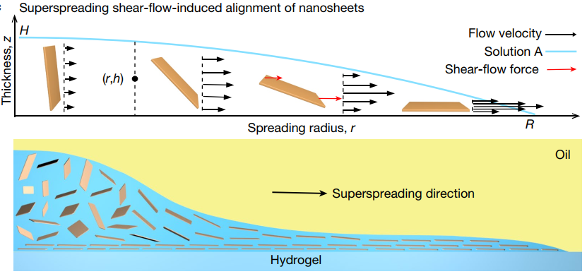 Fig. 1 Superspreading shear-flow-induced alignment of nanosheets