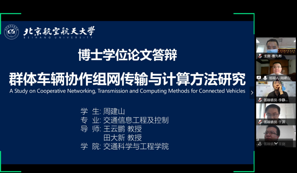 “I was really excited at the moment when I was officially informed that I have passed the defense. The successful practice well reflects the painstaking efforts of my two mentors, the hard work of staff members, as well as the humanistic care and targeted measures of Beihang University. This special “cloud” defense leaves a profound impression on me, and I have deeply realized the high cohesion and steady working style of Beihangers who are always ready to shoulder their responsibilities,” said Zhou Jianshan, who has studied at Beihang for ten consecutive years to pursue his Bachelor's, Master's and Doctor's degrees.