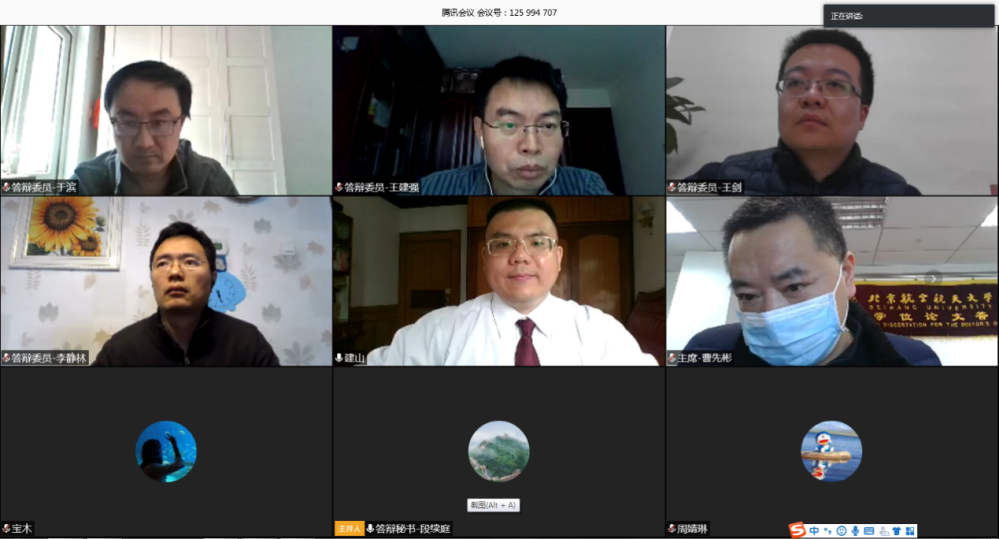 Conducted in an orderly manner, the online defense is a brand new experience for specialists and students at Beihang University. Breaking through the limitation of space, the defender and five defense committee members realized the “zero distance” communication on video meeting platforms. The dissertation defense was conducted on “TenCent Meeting” platform and the related secret ballot was achieved by “SO JUMP”, an online questionnaire platform.
