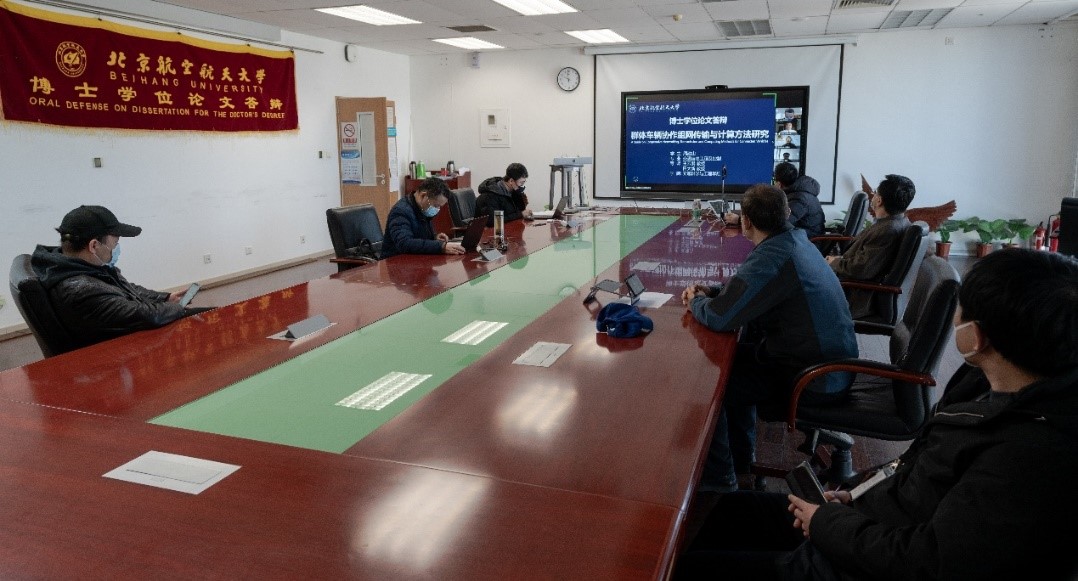 On March 14 at 10:00 am, Prof. Cao Xianbin, Dean of the School of Electronic and Information Engineering, officially kicked off the doctoral dissertation defense as the chairman of the defense committee at the New Main Building of Xueyuan Road Campus of Beihang University. The other four participating specialists are Prof. Wang Jianqiang from Tsinghua University, Prof. Li Jinglin from Beijing University of Posts and Telecommunications, Prof. Wang Jian from Beijing Jiaotong University and Prof. Yu Bin from Beihang University.