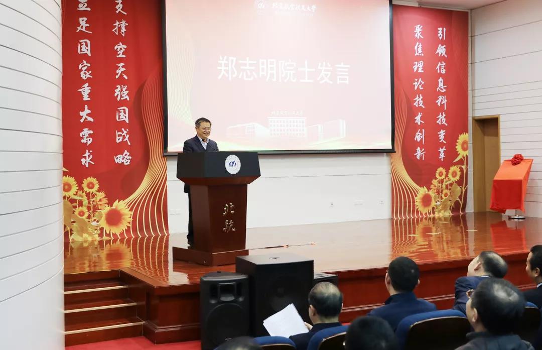 Cao Shumin, Secretary of the Party Committee of Beihang, Xu Huibin, President of Beihang, Zheng Zhiming, Director of Beihang Artificial Intelligence Research Institute and Jin Rong, Secretary of the Party Committee of the School of Astronautics unveiled the nameplate of the institute together