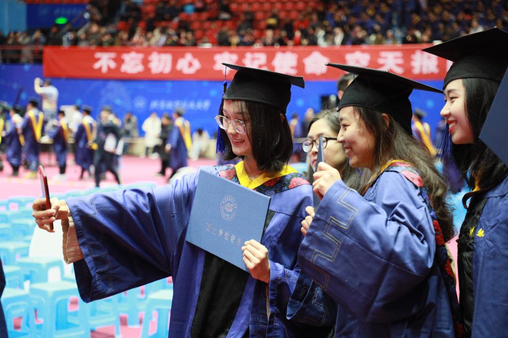 Later on, the degree conferment ceremony was held. Leaders and members of the degree evaluation committee turned the tassel for all the graduates, who received their degree certificates and took group photos.