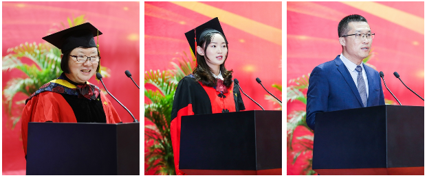 Besides them, other participants included university leaders, representatives of excellent alumni, supervisors and graduates, some members of the degree evaluation committee, leaders and teachers from all schools, and family members of the graduates. The ceremony was hosted by Vice President Huang Haijun.