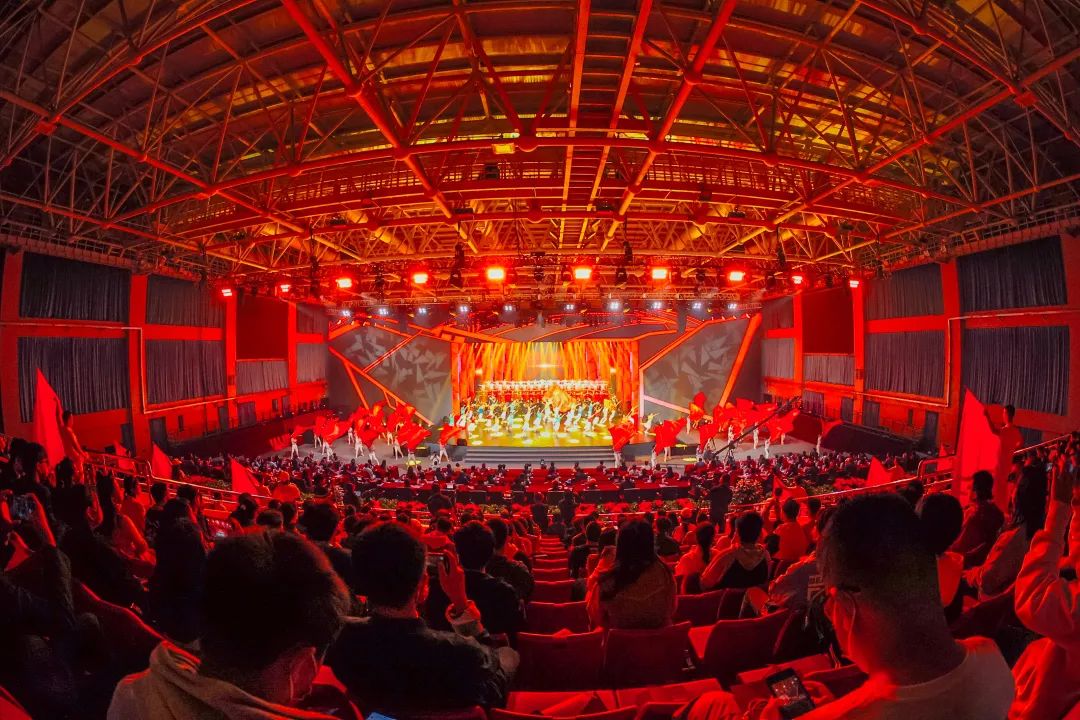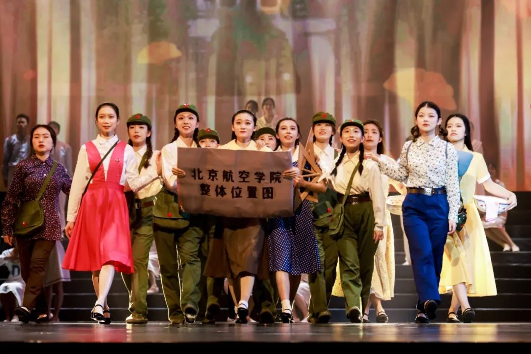 The third part, “Unswerving Commitment”, told the new chapter where Beihang pursues to build a world-class university following the spirit of the 20th CPC National Congress. Microfilm Writing a Poem in the Sky (in Chinese: Zai Tian Kong Xie Shi De Ren) recounted the struggles and explorations of Beihang teachers and students in fields of aeronautics and astronautics. A pericope of the musical Luo Yang reminded the audience of this alumnus’ great achievements. Young students in uniforms performed a dance to show their strong determination to serve the country.