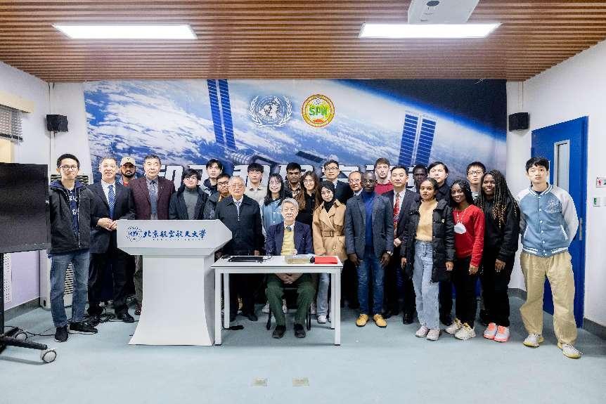 The lecture was held at Beihang International School in a combination of online live stream and offline interaction. It was co-sponsored by the BHASP and the Regional Centre for Space Science and Technology Education in Asia and the Pacific (China) (Affiliated to the United Nations) (RCSSTEAP for short), with the full support of the China Organizing Committee of the International Week of Science and Peace. Chen Yixiong, Deputy Director and Secretary-General, and Zhang Dong, Asistant Secretary General of the China Organizing Committee of the International Week of Science and Peace, the head of BHASP, the head of Beihang Air and Space Museum, and representatives of international students from various countries studying at Beihang International School attended the event. Professor Weng Jingnong, Dean of Beihang International School and Executive Director of the RCSSTEAP, presided over the lecture.