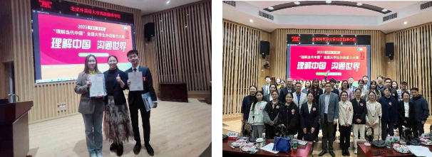 From October 28 to 29, the 2023 “FLTRP · ETIC Cup” “Understanding Contemporary China” National Foreign Language Contest for College Students — English Translation and Interpreting Competitions Beijing Division took place in Beijing Foreign Studies University (BFSU). This competition is guided by the Department of Higher Education of Beijing Municipal Education Commission, and sponsored by the Beijing Society of Higher Education, Beijing Colleges and Universities English Language Research Branch, Beijing Colleges and Universities English Language Group, and Foreign Language Teaching and Research Publishing Co., Ltd. Beihang University School of Foreign Languages students Cai Yilin, an undergraduate student majoring in English of Grade 2020, and Hong Minhao, a MTI student of Grade 2023 won the gold medals in Translation Competition under the guidance of Wang Chenshuang and Dun Chao of the Department of Translation; Fu Xinzhu, an undergraduate student majoring in Translation of Grade 2020 and Lu Meili, a master's degree student majoring in Literature of Grade 2022 won the gold medal and silver medal respectively in Interpreting Competition under the guidance of Zheng Wei and Wang Pei.