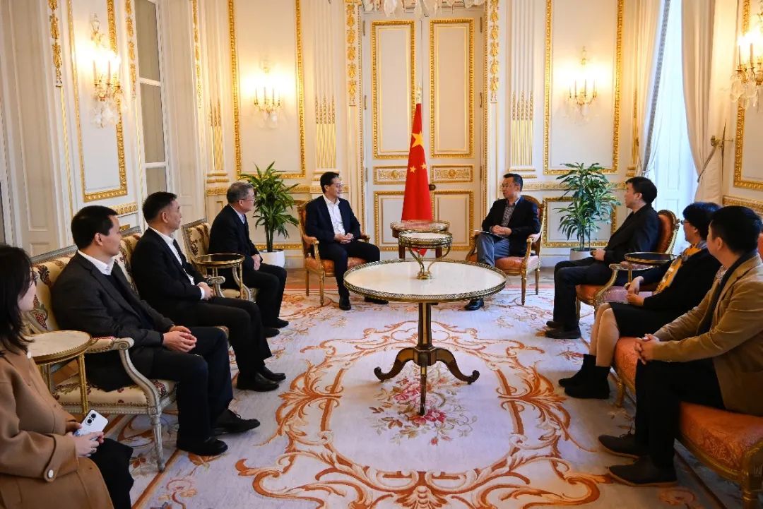 During the visit, Wang Yunpeng and the delegation visited the Chinese Embassy in France to meet with Ambassador Lu Shaye. The two sides exchanged ideas on expanding Beihang's cooperation with France in science, education, and humanities, and deepening Sino-French cooperation in education. Lu Shaye pointed out that aerospace and energy are important areas of practical cooperation between China and France, and there is a good foundation and development potential for them. He will work with Beihang to promote Sino-French exchanges. Wang Yunpeng pointed out that Beihang started collaborating with French universities as early as 1985 and will continue to strengthen comprehensive cooperation in various fields such as talent cultivation, scientific research, elevating the friendship between China and France to a new level.