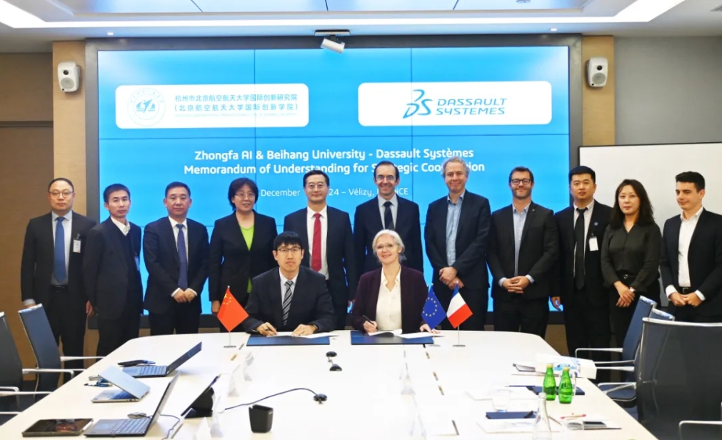 At Dassault Systèmes Headquarters, the delegation explored the 3D Experience Platform, where Wang Yunpeng and Grégory Abate, Secretary-General of Dassault Systèmes, signed a strategic cooperation memorandum. The agreement focuses on building a digital research and education platform and an innovation center at the Hangzhou International Campus, with joint research efforts in areas such as the industrial metaverse, AI and simulation, digital healthcare, integrated circuits, and the low-altitude economy.